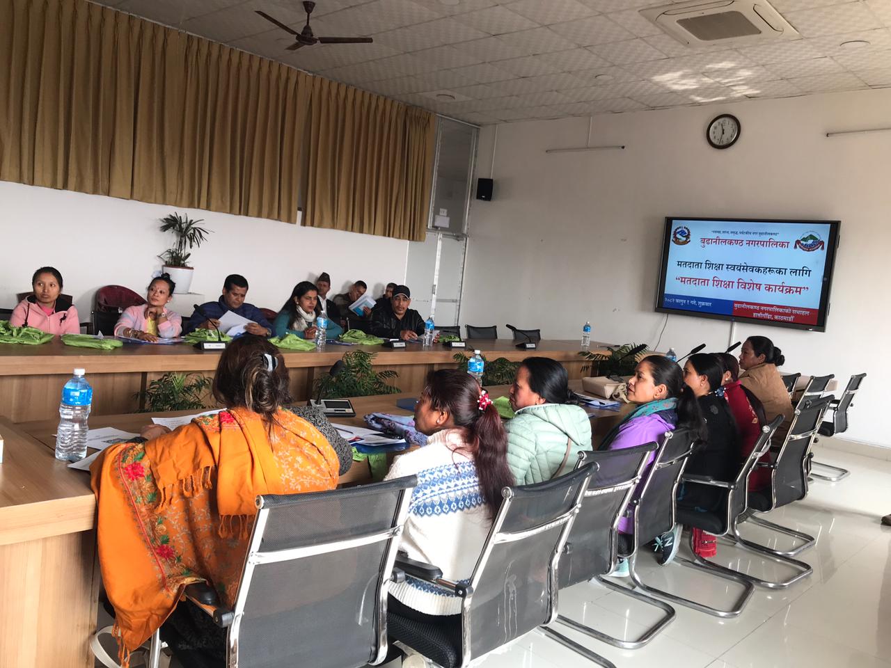 काठमाडौं। बुढानीलकण्ठ नगरपालिकामा मतदाता शिक्षा स्वयंसेवकहरूका लागि “मतदाता शिक्षा विशेष कार्यक्रम” सम्पन्न भएको छ। आगामी निर्वाचनलाई लक्षित गर्दै मतदाता शिक्षालाई प्रभावकारी, व्यवस्थित र पहुँचयोग्य बनाउने उद्देश्यले कार्यक्रम आयोजना गरिएको हो।