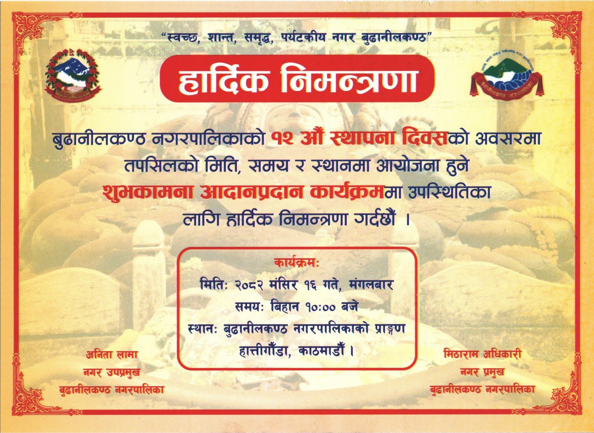 बुढानीलकण्ठ नगपालिकले १२औँ स्थापना दिवस मनाउने तयारी