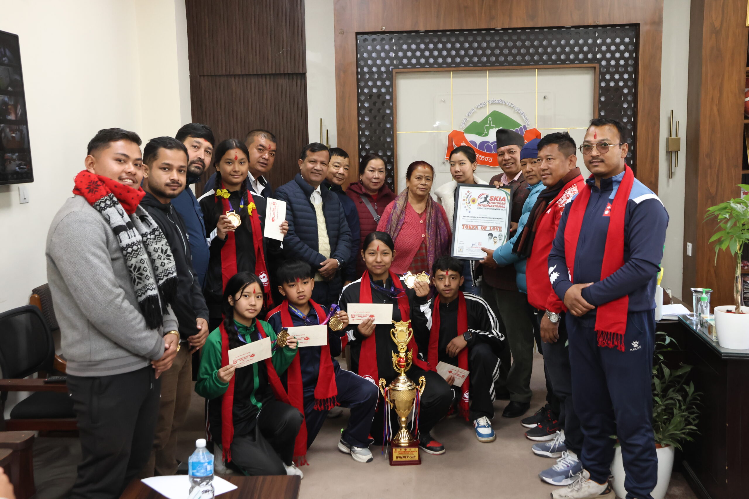 बुढानीलकण्ठ नगरपालिका सितोरियो कराँते डोजोका खेलाडीहरूलाई नगर प्रमुखद्वारा सम्मान